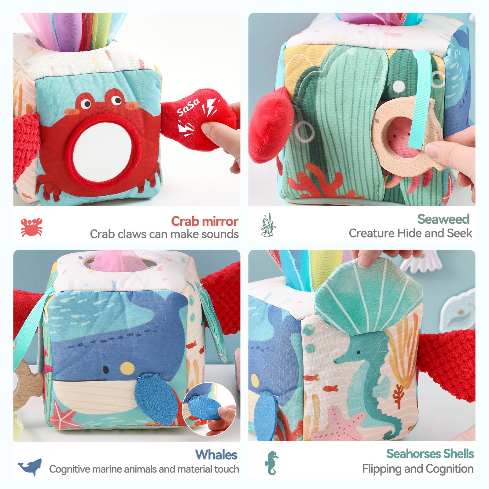Discover the Magic Tissue Box – a Montessori-inspired sensory toy that delights babies with endless tissue-pulling fun! Builds fine motor skills, cause-effect understanding & concentration. Perfect for ages 10m+!