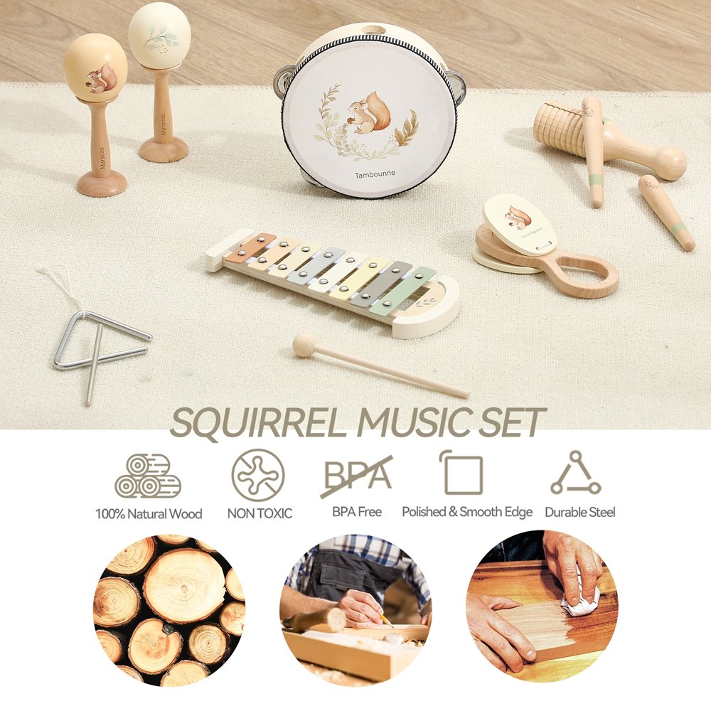 🐿️ 3-in-1 Design: Xylophone, drum, and maracas provide varied musical experiences