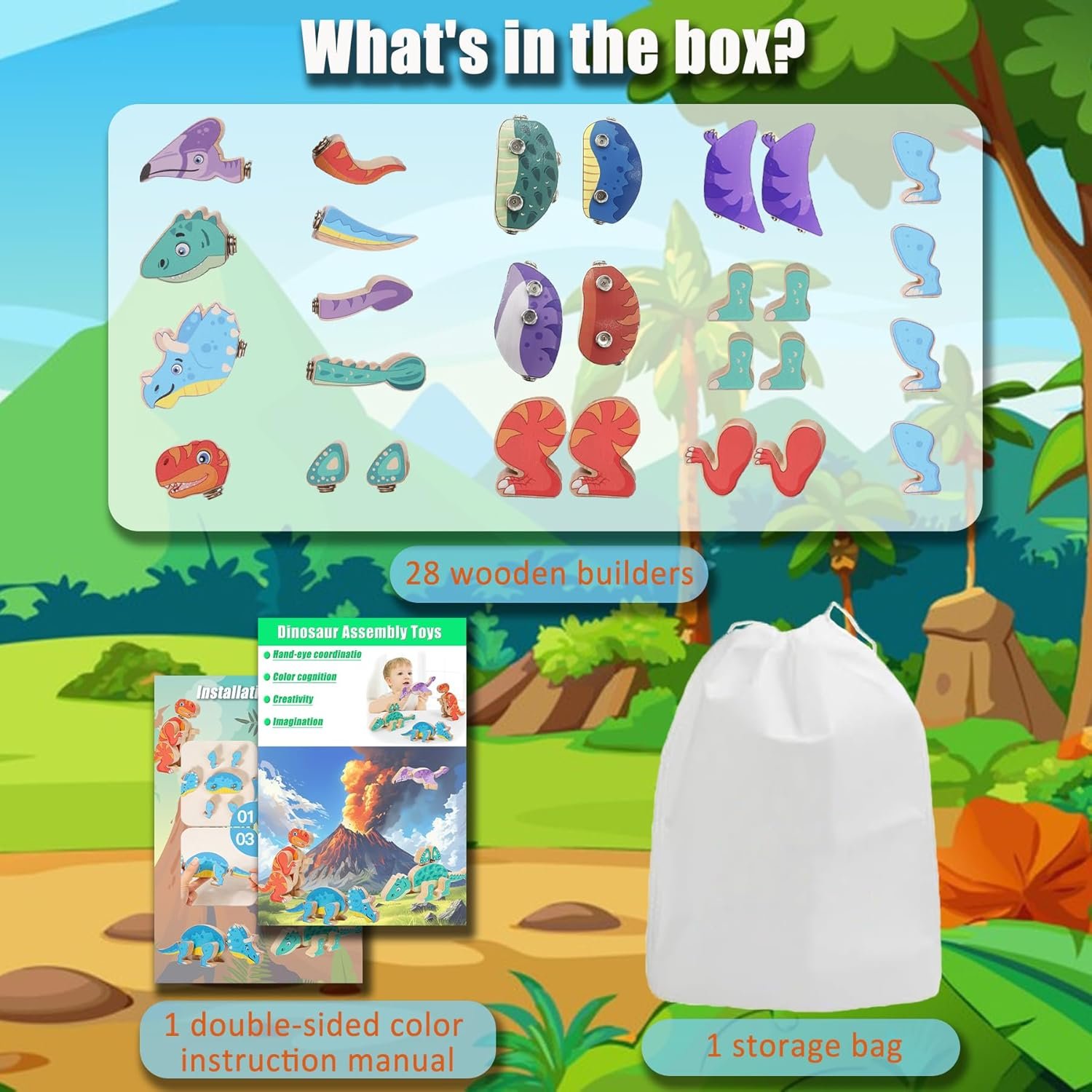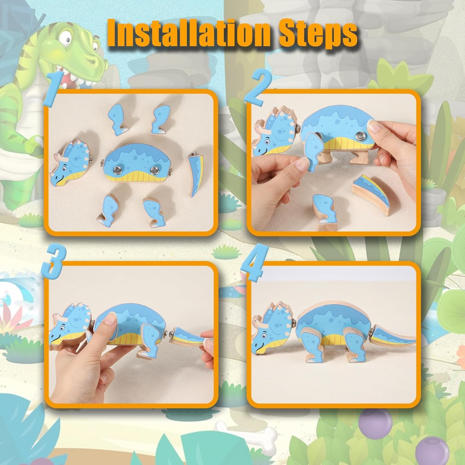 Complete Playset: Comes with wooden dinosaur parts, toy screwdriver, and easy-to-follow guide.