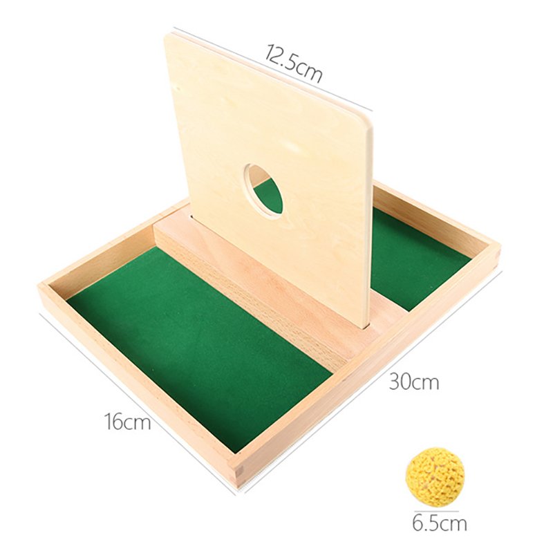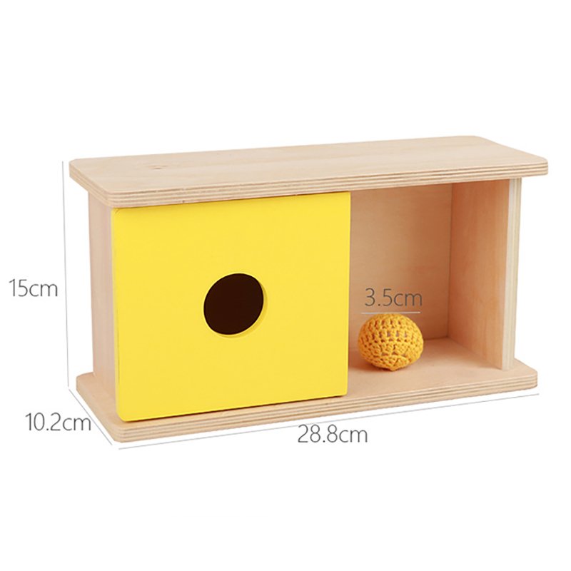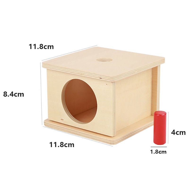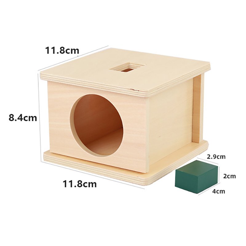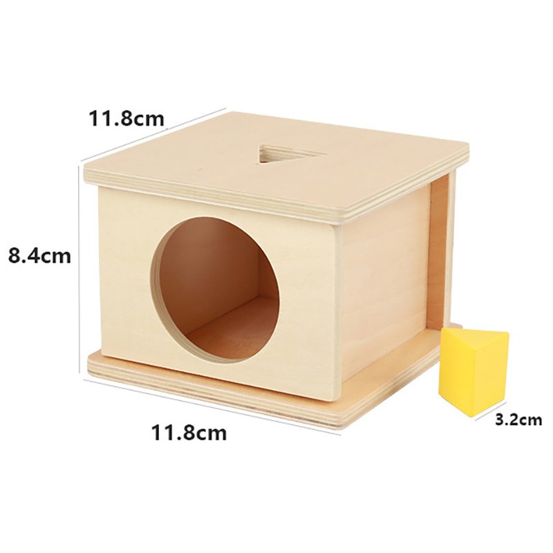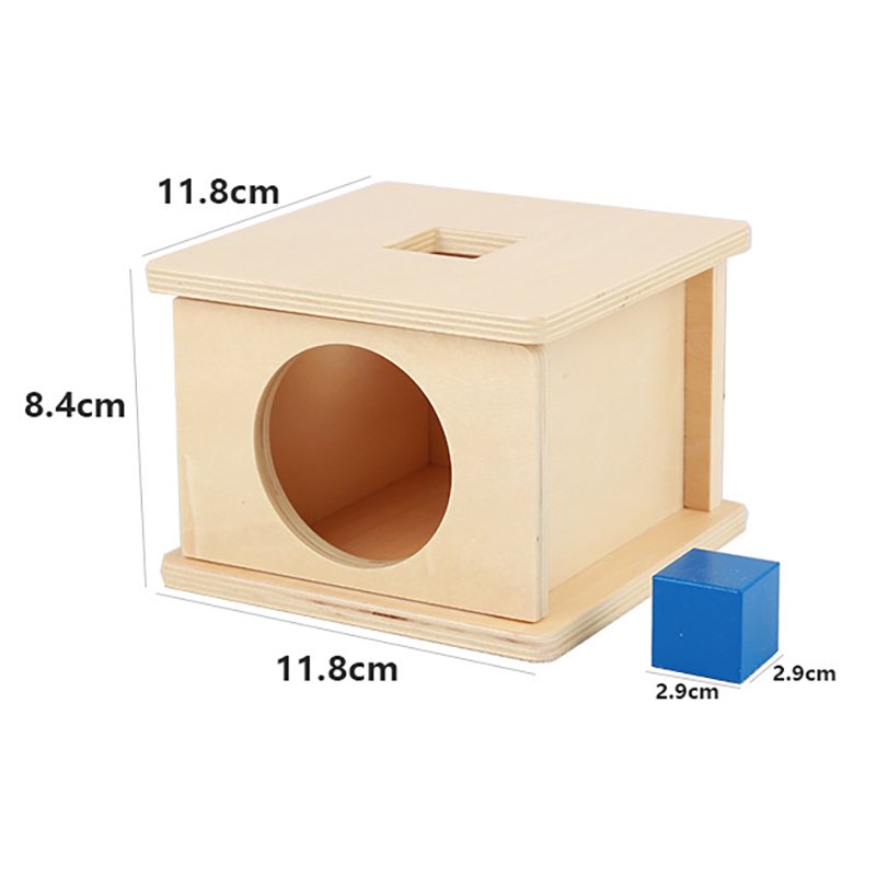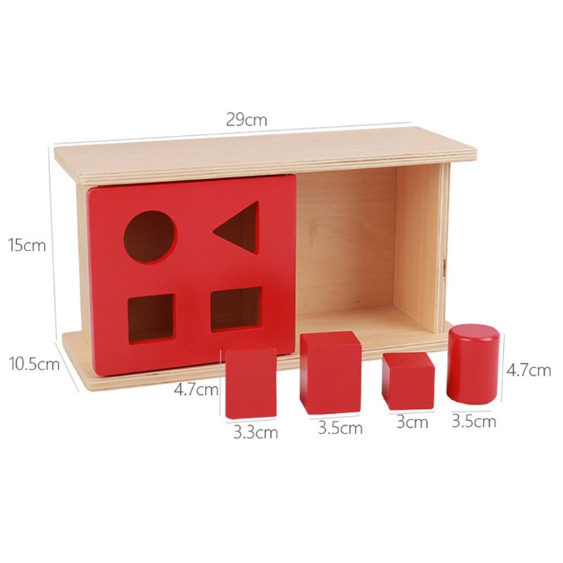 This authentic imbucare box represents one of Montessori’s most foundational materials, specifically designed to support the crucial developmental stage when children discover object permanence and refine their visual-motor coordination.