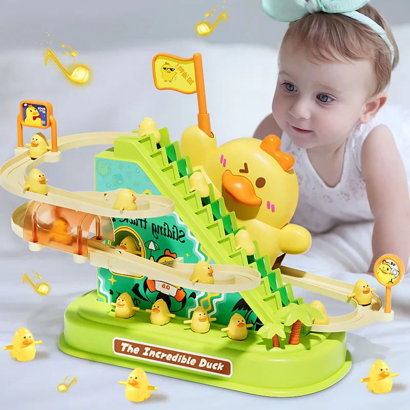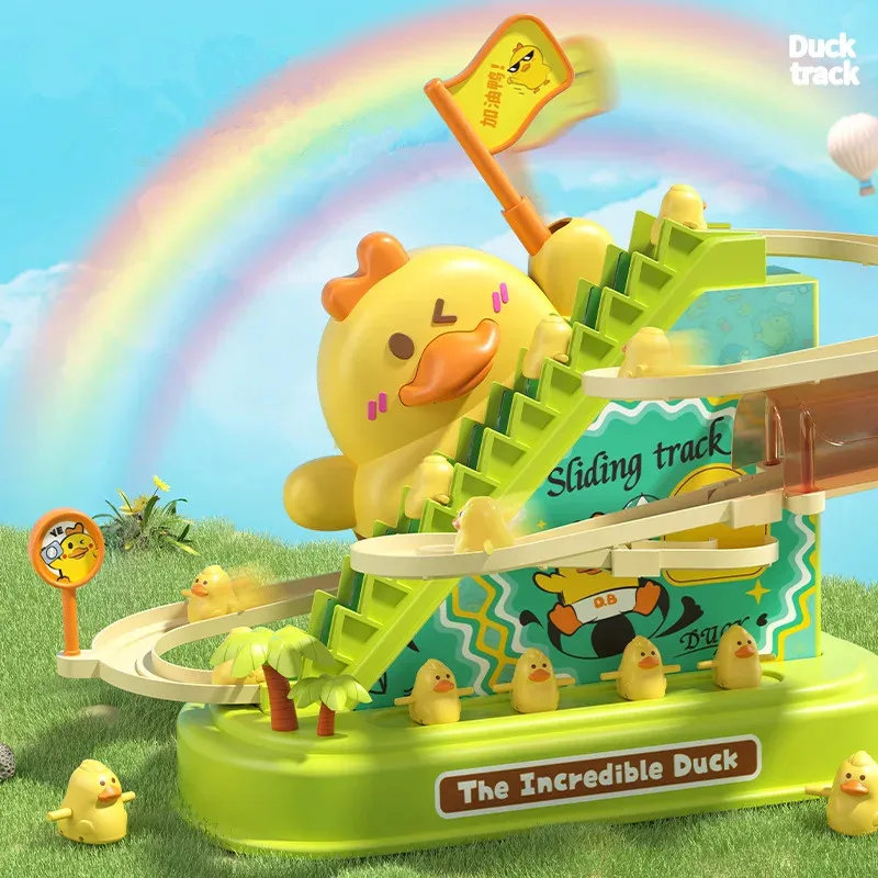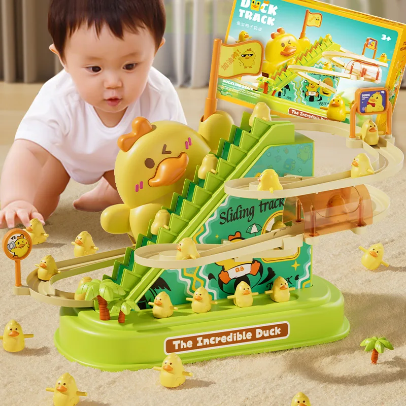 Experience the mesmerizing magic of endlessly climbing ducks! This charming battery-powered toy features colorful ducks that continuously march up the staircase, providing fascinating visual stimulation and developmental benefits for curious minds.