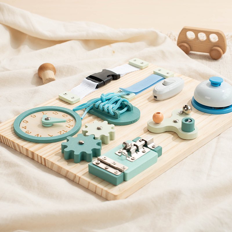 Every element on our busy board serves a specific purpose in your child’s development journey: